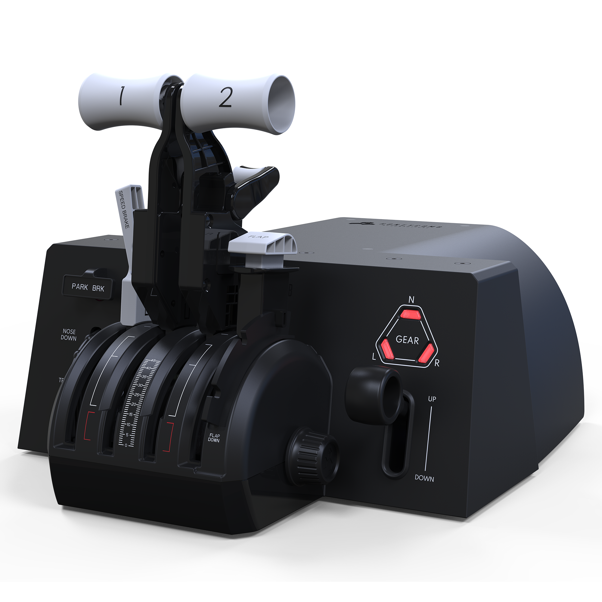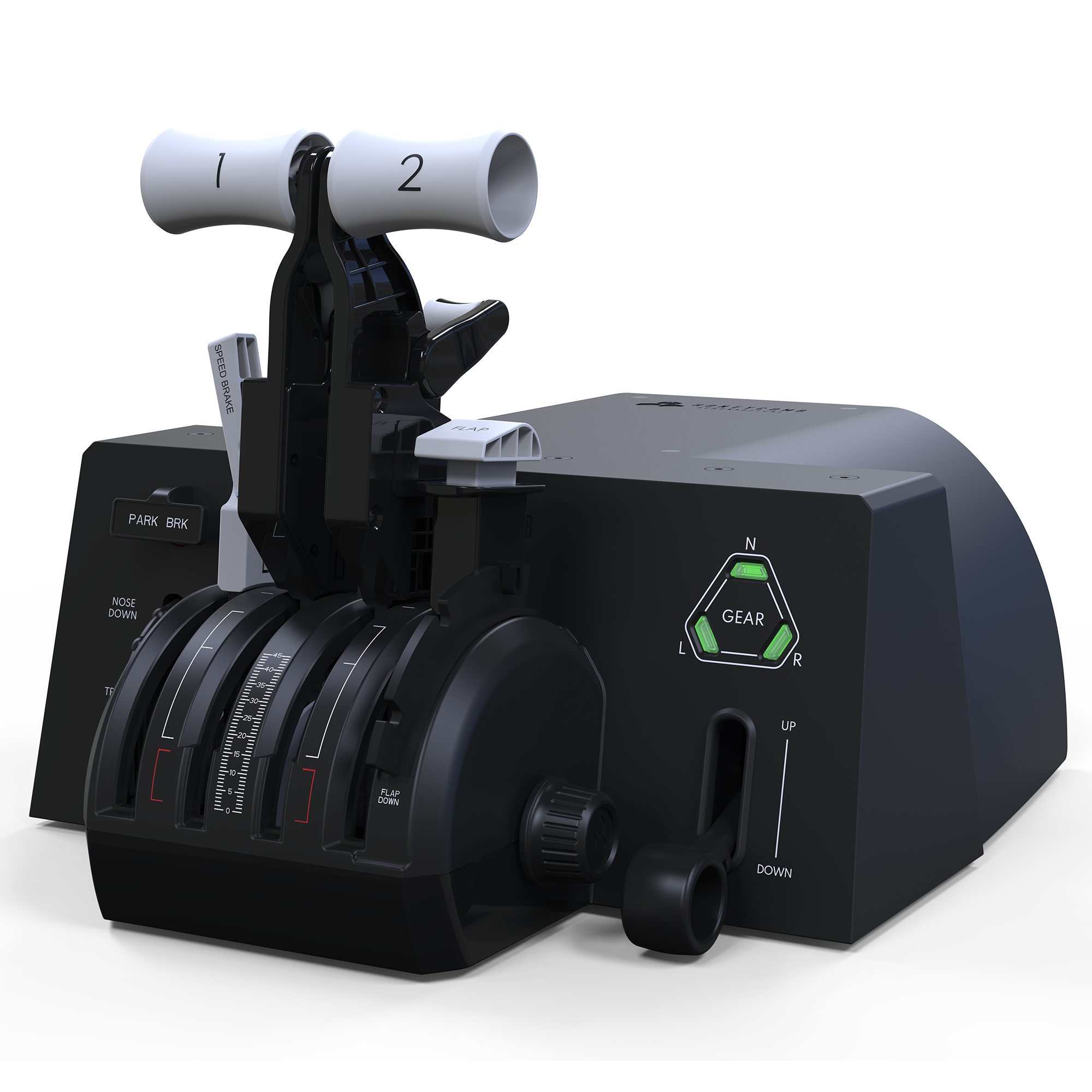 TRIM WHEEL AND LANDING GEAR- Built-in, low-profile trim wheel for superior fine-tuning. Integrated landing gear lever and LED status indicator light for immersive take-off and landing.